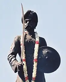 Even though historically Bengaluru is chronicled to the period of 900 AD, but with confirmed history of the Bengaluru Pete traced to 1537, when Kempe Gowda I (pictured), a Chieftain of the Vijayanagara Empire, widely held as the founder of modern Bangalore, built a mud fort and established the area around it as his province. He was the great-grandson of Jaya Gowda who established the Yelahankanada Prabhu clan, in 1418 AD, and whose principality was in Yelahanka, north of the present day Bangalore.[8] Kempegowda I, who showed remarkable qualities of leadership from his childhood, had a grand vision to build a new city which was further fueled by his visits to Hampi (now a UNESCO heritage city) the then beautiful capital city of the Vijayanagar Empire. He persevered with his vision and got permission from the King Achutaraya, the ruler of the empire, to build a new city for himself. The King gifted 12 hoblis (revenue subdivisions) with an annual income of 30,000 varahas (gold coins) to his Chieftain Kempegowda to meet the expenses of his venture of building a new city.[9][10]
