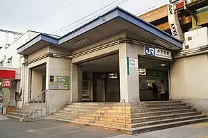 Station numbering was introduced to the JR West facilities in March 2018 with the Osaka Loop Line platforms being assigned station number JR-O15.[1][2]