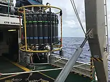 The Bermuda Atlantic Time-series Study (BATS) is a long-term oceanographic study by the Bermuda Institute of Ocean Sciences (BIOS). Based on regular (monthly or better) research cruises, it samples an area of the western Atlantic Ocean nominally at the coordinates 31°40′N 64°10′W / 31.667°N 64.167°W. The cruise programme routinely samples physical[1] properties such as ocean temperature and salinity, but focuses on variables of biological or biogeochemical[2] interest including: nutrients (nitrate, nitrite, phosphate and silicic acid), dissolved inorganic carbon, oxygen, HPLC of pigments, primary production and sediment trap flux. The BATS cruises began in 1988 but are supplemented by biweekly Hydrostation "S" cruises to a neighbouring location (32°10′N 64°30′W / 32.167°N 64.500°W) that began in 1954.[3] The data collected by these cruises are available online.