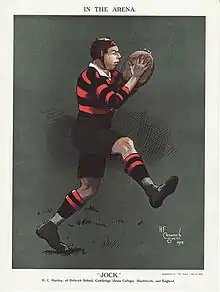 Major Bernard Charles "Jock" Hartley OBE (16 March 1879 – 24 April 1960)[1] was a rugby union international player who represented England from 1901 to 1902. At club level he represented Cambridge University and Blackheath. In 1938 he was given the role of team manager of the British Isles team on their tour of South Africa.