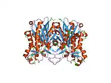 - ↑ PDB: 1HN9; Qiu X, Janson CA, Konstantinidis AK, Nwagwu S, Silverman C, Smith WW, Khandekar S, Lonsdale J, Abdel-Meguid SS (December 1999). "Crystal structure of beta-ketoacyl-acyl carrier protein synthase III. A key condensing enzyme in bacterial fatty acid biosynthesis". J. Biol. Chem. 274 (51): 36465–71. doi:10.1074/jbc.274.51.36465. PMID 10593943.