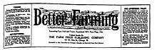Better Farming was a monthly newspaper from the early 20th century that originated in Chicago, Illinois. It provided information about best practices in agriculture and housekeeping. Along with farming advice, fiction and nonfiction pieces, and advertisements, it offered articles for children as well.