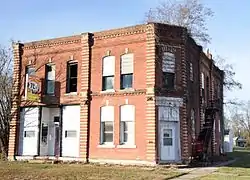 The Bicksler Block is an historic building located in Salem, Iowa, United States. John Bicksler had this commercial building built in 1886. The two story, brick structure is a combination of the Romanesque Revival and the Italianate styles. Salem's central business district was plagued by fires from 1886 to 1933. This building was built after the first major fire to effect the town in 1886.[2] The store front on the east side of the building housed a bank into the early 1900s and then the local post office was located here until 1967. The western half of the building has housed a variety of businesses over the years, including: clothing stores, two different milliners, a restaurant, and a pool hall. The second floor housed a variety of offices, including a dentist. The American Legion acquired the building from the Bicksler family in 1950. It was listed on the National Register of Historic Places in 2010.[1]