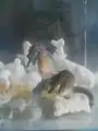In the wild, breeding can commence when the seahorses are about one year old, and this can be reduced to about eight months when in captivity. Breeding in big-belly seahorses occurs year-round, with peaks in the warmer months.[4]