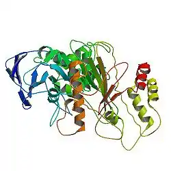 Bile salt-dependent lipase (or BSDL), also known as carboxyl ester lipase (or CEL) is an enzyme produced by the adult pancreas and aids in the digestion of fats. Bile salt-stimulated lipase (or BSSL) is an equivalent enzyme found within breast milk. BSDL has been found in the pancreatic secretions of all species in which it has been looked for. BSSL, originally discovered in the milk of humans and various other primates, has since been found in the milk of many animals including dogs, cats, rats, and rabbits.[5]