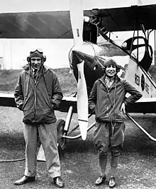 In 1927, Lancaster transferred to the RAF Reserve (he continued to hold a commission until 30 April 1930),[3][4] and decided to make a name for himself by flying from England to Australia. He made this flight in the Avro Avian Red Rose, accompanied by Australian Jessie "Chubbie" Miller, who helped finance the flight.[5] It was at the time one of the longest flights made in such a small aircraft—although they were overtaken en route by Bert Hinkler in another Avian—and the first England–Australia flight by a woman.[6] A huge crowd greeted them on arrival in Darwin, and on their subsequent tour around Australia.[7]