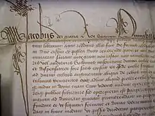 The Beginning of the 1531 Charter from James V to Bishop Dunbar (in the University of Aberdeen Archives)