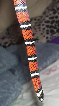 Lampropeltis triangulum gaigeae, commonly known as the black milk snake, is a non-venomous subspecies of milk snake. It is the largest known milk snake subspecies. Black milk snakes are found in the mountains of Costa Rica and Panama.