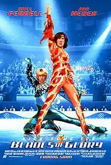 Blades of Glory is a 2007 American sports comedy film directed by Will Speck and Josh Gordon, written by Jeff Cox, Craig Cox, John Altschuler and Dave Krinsky, and starring Will Ferrell and Jon Heder with Will Arnett, Amy Poehler, William Fichtner, Jenna Fischer and Craig T. Nelson in supporting roles. It tells the story of a mismatched pair of banned figure skaters who become teammates upon discovering a loophole that will allow them to compete in the sport again. The film's story was conceived by Busy Philipps, who "fleshed out the screenplay".[2] However, co-writers Jeff and Craig Cox dropped her name from the script.[3] The film was produced by DreamWorks Pictures, MTV Films, Red Hour Films and Smart Entertainment and released on March 30, 2007, by Paramount Pictures. The film was met with positive reviews.