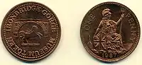 The first building visitors see in the museum is the bank (modelled on the still-standing Lloyds Bank branch in Broseley), at which they can change modern coinage into token coinage that represents the predecimal farthings, halfpennies, pennies, threepenny bits and sixpences, at an exchange rate of 40 new pence to 1 old penny. They can then use the token coins as an alternative to modern currency for buying goods whilst visiting the museum (the gift shop at the museum entrance operates only in modern currency).