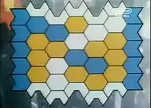 Blockbusters is a British television quiz show based upon an American quiz show of the same name. A solo player and a team of two answer trivia questions, clued up with an initial letter of the answer, to complete a path across or down a game board of hexagons.