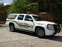 Rescue 7 is another quick response SUV. Unlike Rescue 6, Rescue 7 is more equipped and capable for wilderness search and rescue. This vehicle contains a built-in platform with a stokes basket, pre-rigged rope rescue system and manual extrication tools, providing rescuers with tools and equipment that assist students in accessing and extracting patients.