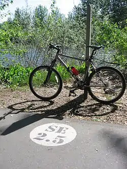 In the Parkcenter Boulevard area bicycling is prohibited on a section which is unpaved and follows the river bank for approximately 2 miles (3.2 km) from Barber Park to East River Run Drive. Bicyclists are routed on a circuitous route on residential neighborhood streets.