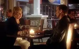 ![]() The Doctor dines with Margaret Blaine. The scene of the Doctor dining with his enemy was centred around exploring a moral dilemma concerning the consequences of the Doctor's actions. | |||