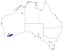This boronia grows on breakaways and slopes between Ongerup and Hopetoun in the Mallee biogeographic region.[2][3]