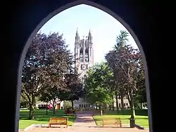 Boston College Main Campus Historic District encompasses the historic heart of the campus of Boston College in the Chestnut Hill area of Newton, Massachusetts. It consists of a collection of six Gothic Revival stone buildings, centered on Gasson Hall, designed by Charles Donagh Maginnis and begun in 1909.[2]