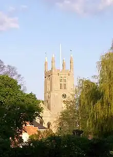 Bourne is a market town and civil parish in the South Kesteven district of Lincolnshire, England. It lies on the eastern slopes of the limestone Kesteven Uplands and the western edge of the Fens,[2] 11 miles (18 km) north-east of Stamford, 12 miles (19 km) west of Spalding and 17 miles (27 km) north of Peterborough. The population at the 2011 census was 14,456.[3] A 2019 estimate put it at 16,780.[4]