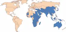 The virus has been found in tropical and subtropical regions of Asia, Africa and through eastern Australia. It is not found in the Americas, or in Europe (except western parts of Turkey).[1]