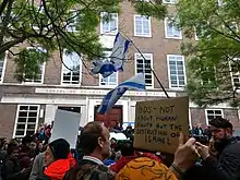 In Israel, some more established radical groups, such as Women in Black, ICAHD, AIC, and New Profile, initially issued statements supporting the boycott.[90][91] Boycott from Within often uses creative performances to display its support for the boycott and the research group Who Profits supplies BDS with information about companies complicit in the Israeli occupation.[92] On campuses in the U.S., Canada and New Zealand, the student organization Students for Justice in Palestine (SJP) supports BDS. According to the American coordinating body National Students for Justice in Palestine, it had about 200 chapters in the U.S. as of 2018.[93] The left-wing activist organization Jewish Voice for Peace (JVP) advocates for BDS among American Jewry.[94]