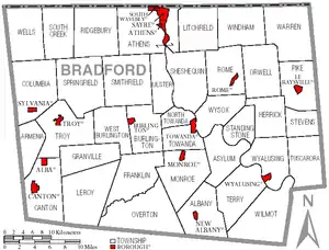 - ↑ Bradford County History Archived July 27, 2011, at the Wayback Machine, Bradford County, Pennsylvania. Accessed August 21, 2007