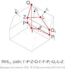 - ↑ Setyawan, Wahyu; Curtarolo, Stefano (2010). "High-throughput electronic band structure calculations: Challenges and tools". Computational Materials Science. 49 (2): 299–312. arXiv:1004.2974. Bibcode:2010arXiv1004.2974S. doi:10.1016/j.commatsci.2010.05.010. S2CID 119226326.