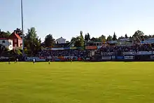 The venue was home ground for Briskebyen from its opening.[5] In its inaugural season, the club was newly relegated to Class B, as most of the club's effort had gone to building the venue. From 1937 the club again played in Class A. The venue was also used for matches where a mixed Briskebyen and Hamar IL played friendlies against foreign teams.[64] No official matches were played during the Second World War.[3] In April 1946, Briskebyen FL merged with Hamar AIL to create Hamarkameratene.[65]