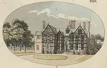 An advertisement, for leasing the property, in 1895 describes the property as having five reception rooms, a billiard room, fourteen bedrooms, kitchen, cellars, stabling and gardens[1]