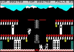 Later chambers include more hazards such as mines and moving walls, as well as a "comb-like" surface that has an electric spark racing along it. Skilful walking, climbing, ducking and jumping are required to negotiate them. On the twentieth screen, Lee finally faces the evil Fire Wizard.