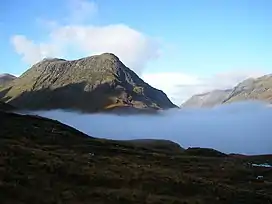 Buachaille Etive Beag (/ˈbuəxl ˈɛtɪv ˈbɛɡ/,[2] Scottish Gaelic: Buachaille Èite Beag,[3] 'little herdsman of Etive') is a mountain between Glen Coe and Glen Etive in the Highlands of Scotland. It lies west of Buachaille Etive Mòr, its larger neighbour, from which it is separated by a high mountain pass called Lairig Gartain.