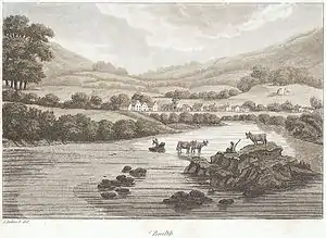 Situated in the valley of Afon Irfon, Buellt's boundaries were roughly the Cambrian Mountains to the north, the River Wye to the east, the Mynydd Epynt range to the south, and Ceredigion to the west. It was closely associated with the territories of Gwrtheyrnion, Elfael, and Maelienydd, and as such was often considered part of the region known as Rhwng Gwy a Hafren (English: Between Wye and Severn) despite being west of the Wye.[3] The cantref was divided into four major commotes, whose boundaries are unclear: Treflys, Pebuellt, Dinan, and Is Irfon. Most of Buellt's major sites were located along the Irfon, including the courts of the commotes and the major church at Llanafan Fawr, dedicated to Saint Afan Buellt, the cantref's chief saint.[4]