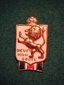 Bundles for Britain, the BWRS and its affiliates have provided a wealth of items for collectors of home front memorabilia. Some of the more common items are button lapel pins. These display the British War Relief emblem of a lion rampant and shield. A high number feature the French motto Dieu et mon Droit, the motto of the British monarch and translated as "God and my right".