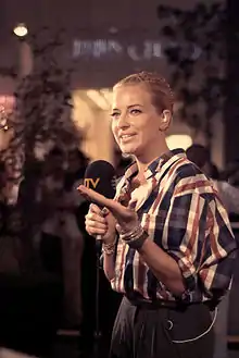 Kamile Burcu Esmersoy (born 2 October 1976)[2] is a Turkish actress, anchorwoman, journalist, model, occasional and beauty pageant titleholder who represented her nation at Miss International 1997 in Japan. She received a Golden Butterfly Award for Best Female Presenter.[3] Burcu Esmersoy is one of Turkey's leading female reality show hosts and highest-paid television personalities.[4][5][6] Amongst the Turkish television shows hosted by Esmersoy are Ver Fırına, Survivor, Popstar, Nedir Ne Değildir, Late Summer Night with Burcu Esmersoy, Komedi Türkiye, En Güzel Bölüm, Elin Oğlu, and Dancing with the Stars. As an actress, she starred in Romantik Komedi (2010), Dedektif Memoli (2011), as Aylin Youlin in Çocuklar Duymasın (2012), and as special guest star Melda in Bir Erkek Bir Kadın (2013), Turkish adaptation of the French-language Canadian comedy television series Un gars, une fille.