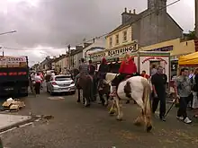 The ancient horse fair was originally held at the Fair Field of Cahirmee, some two miles to the east of the town.[1] In 1921 it was transferred into the town and is still held in the month of July each year.