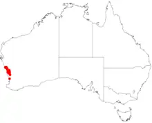 This species of blue tinsel lily is relatively common between Gillingarra (near New Norcia) and Eneabba and common in Watheroo and Alexander Morrison national parks. It usually grows in shallow white or grey sand over laterite on kwongan slopes.[1]