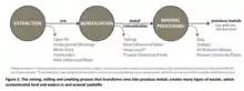 Since the 1850s byproduct materials, such as tailings and slag, were left by mining operations.[10] High levels of heavy metals and mine drainage raised concern of high blood lead levels in residents, particularly in children. This hazardous waste and low-pH water also reduced biological diversity and caused stress in the ecosystem, decreasing the trout populations.[9] The most concerning contaminants are arsenic, cadmium, copper, lead, manganese, and zinc.[7][11]
