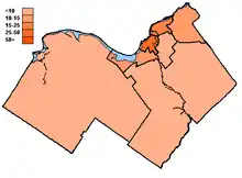 ![]() Map of the region's ridings in 1979. Colours show the result from the 1979 election |
