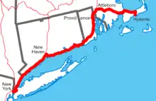 The Cape Codder used the Northeast Corridor to Attleboro, Massachusetts, where it split to reach Cape Cod