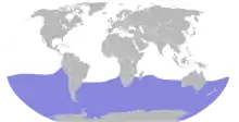 During breeding season, Cape petrels feed around Antarctica's shelf and during the winter they range further north, as far as Angola and the Galapagos Islands. They breed on many islands of Antarctica and the subantarctic islands, some going as far as the Auckland Islands, the Chatham Islands, Campbell Island. Their main breeding grounds are on the Antarctic Peninsula, South Georgia, the Balleny Islands, the Kerguelen Islands, as well as islands in the Scotia Sea.[13]