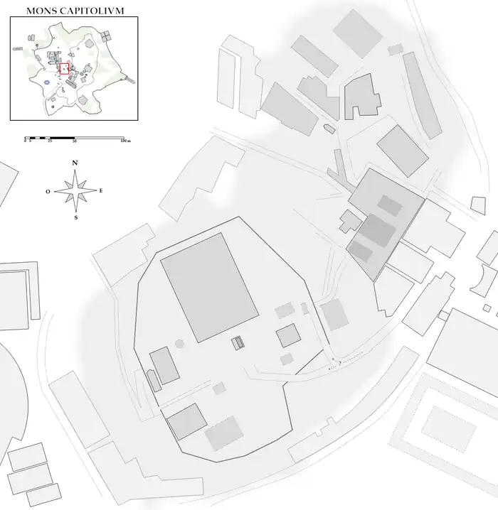 BuildingsPiazza del Campidoglio, Palazzo Senatorio, Palazzo dei Conservatori, Palazzo Nuovo, Tabularium, Aedes Tensarum
