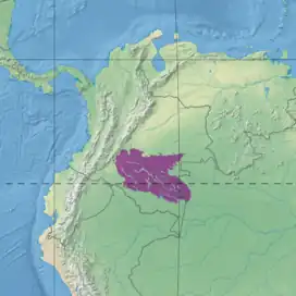 On the northeast the forest is bounded by the Guainía (Rio Negro), Guaviare, and Guayabero rivers. In the west it is bounded by the Andes. In the south it is bounded by the Caguán River and then the Caquetá (Japurá) River. The forest is crossed by the Apaporis, Vaupés and Yarí rivers.[3] The ecoregion adjoins the Napo moist forests to the west, the Solimões–Japurá moist forests to the south, the Japurá–Solimões–Negro moist forests to the east, the Negro–Branco moist forests and the Llanos grasslands to the north, and the Cordillera Oriental montane forests to the northwest.[4]