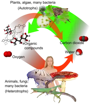 Its concentration in Earth's pre-industrial atmosphere since late in the Precambrian was regulated by organisms and geological phenomena. Plants, algae and cyanobacteria use energy from sunlight to synthesize carbohydrates from carbon dioxide and water in a process called photosynthesis, which produces oxygen as a waste product.[14] In turn, oxygen is consumed and CO2 is released as waste by all aerobic organisms when they metabolize organic compounds to produce energy by respiration.[15] CO2 is released from organic materials when they decay or combust, such as in forest fires. Since plants require CO2 for photosynthesis, and humans and animals depend on plants for food, CO2 is necessary for the survival of life on earth.