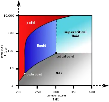 Critical point (T, P) 304.128(15) K[2] (30.978(15) °C), 7.3773(30) MPa[2] (72.808(30) atm)