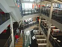 The Central Library was moved to a new building located on St David's Link (Frederick Street), opposite what was then the multi-storey car park. The building was officially opened on 3 December 1988,[14] and occupied the upper storeys of the commercial complex, which were accessed via a polygonal vestibule at street level.[15]