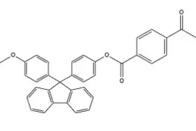 The chemical structure of the repeat unit of a cardo aromatic polyester, with a bisphenol structure incorporated in the backbone