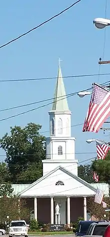The City Hall and Fire Station, designed by local architect Lynn Guidry, is a modern counterpoint to the traditional Catholic church, and can be seen at the southern turn of Church Street east of U.S. 182.