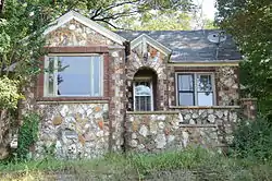 The Carrie Tucker House is a historic house on the north side of East Main Street (United States Routes 62/63), east of Echo Lane in Hardy, Arkansas. It is a single story structure, with a cross-gable roof, and is fashioned out of native rough-cut stone in a vernacular rendition of Tudor Revival styling. The stone is laid in a random uncoursed manner, and dark-colored brick is used at the corners and as trim around the doors and windows, laid as quoining at the corners. The house was built in the late 1920s by Dolph Lane for Carrie Tucker, and is a well-preserved example of vernacular Tudor Revival styling in the city.[2]