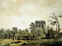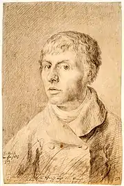 Friedrich began his formal study of art in 1790 as a private student of artist Johann Gottfried Quistorp at the University of Greifswald in his home city, at which the art department is now named Caspar-David-Friedrich-Institut[9] in his honour. Quistorp took his students on outdoor drawing excursions; as a result, Friedrich was encouraged to sketch from life at an early age.[4] Through Quistorp, Friedrich met and was subsequently influenced by the theologian Ludwig Gotthard Kosegarten, who taught that nature was a revelation of God.[4] Quistorp introduced Friedrich to the work of the German 17th-century artist Adam Elsheimer, whose works often included religious subjects dominated by landscape, and nocturnal subjects.[10] During this period he also studied literature and aesthetics with Swedish professor Thomas Thorild. Four years later Friedrich entered the prestigious Academy of Copenhagen, where he began his education by making copies of casts from antique sculptures before proceeding to drawing from life.[11]