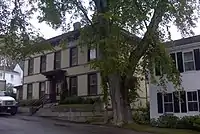 Castine has a number of historic sites and parks (including the ruins of British earthworks at Fort George), a deep water harbor (with tie-ups for small boats beyond the current of the Penobscot and Bagaduce rivers), a non-exclusive club offering golf, tennis and yachting facilities, restaurants, and four churches (Episcopal, Roman Catholic, Congregational and Unitarian Universalist). In addition, the town has a public library, an historical society, and the Wilson Museum, an institution featuring exhibits of anthropological, natural and local artifacts. Castine's streets are lined with Federal, Greek Revival, Cape Cod and other antique style houses, and shaded by large elms which are replaced with disease-resistant strains when they succumb. The Castine Post Office is in one of the oldest Post Office buildings in continuous operation in the United States. The Federal government began leasing the building (built in 1817) in 1833 and later purchased the building. In 1869 the building was renovated to accommodate the Castine Post Office.[25][7]