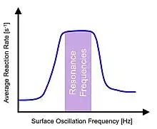 Oscillating binding energies of all surface chemical species introduces periodic instances of transient behavior to the catalytic surface. For slow oscillation frequencies, the transient period is only a small quantity of the oscillation time scale, and the surface reaction achieves a new steady state. However, as the oscillation frequency increases, the surface transient period approaches the timescale of the oscillation and the catalytic surface remains in a constant transient condition. A plot of the averaged turnover frequency of a reaction with respect to applied oscillation frequency identifies the 'resonant' frequency range for which the transient conditions of the catalyst surface match the applied frequencies.[9] The 'resonance band' exists above the Sabatier volcano plot maximum of a static system with average reaction rates as high as five orders of magnitude faster than that achievable by conventional catalysis.
