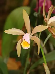 Cattleya forbesii, or Forbes' cattleya, is a species of orchid. The diploid chromosome number of C. forbesii has been determined as 2n = 54โ60.[1]